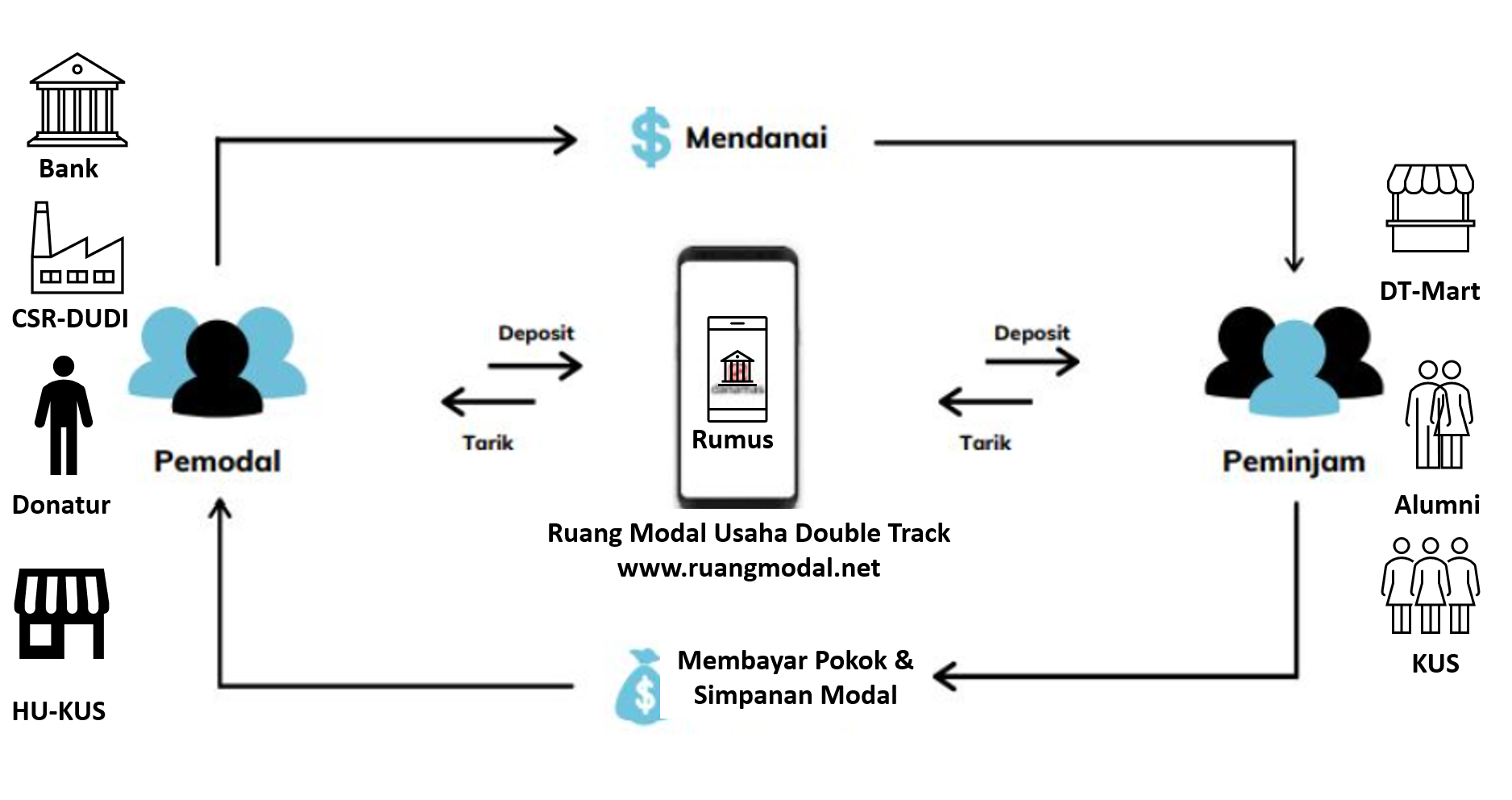 Rumus atau Ruang Modal Usaha merupakan layanan permodalan berbasis Kelompok Usaha Siswa yang diperuntukkan bagi Alumni Program Pelatihan Double Track baik yang memulai usaha maupun mengembangkan/ memperbesar usahanya.